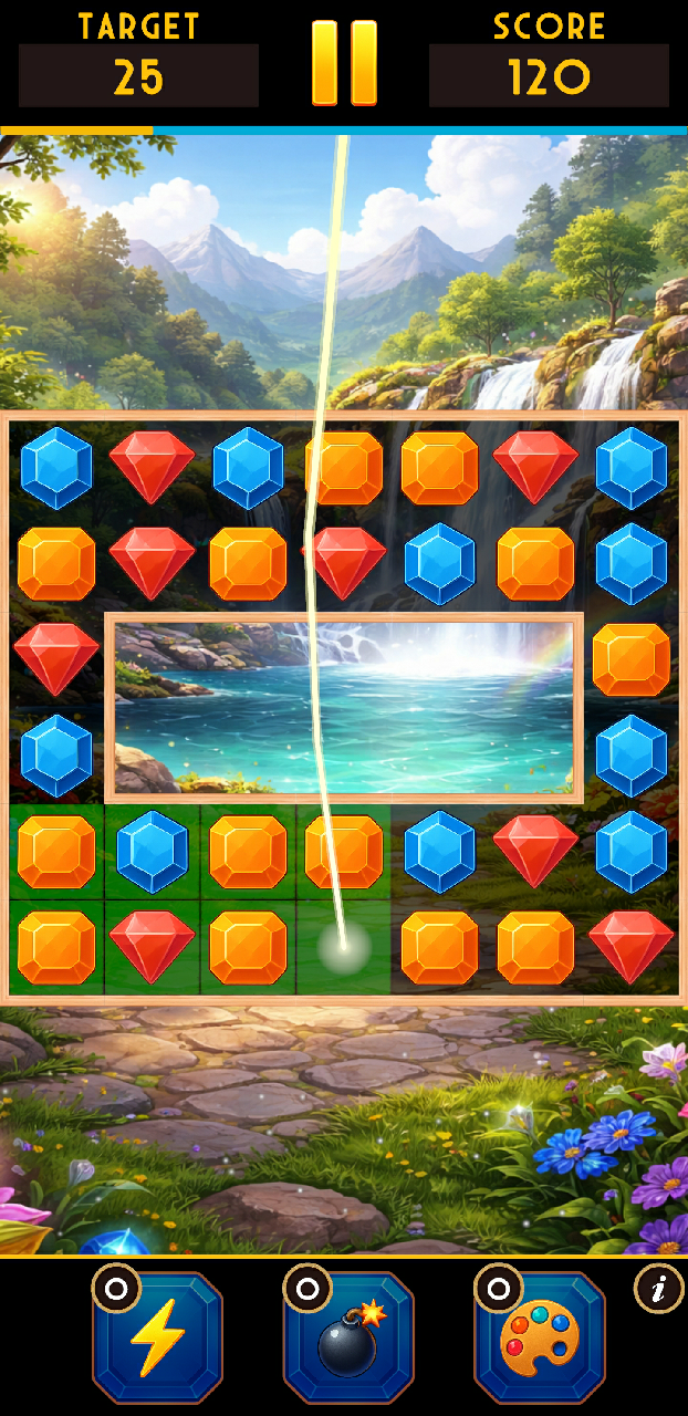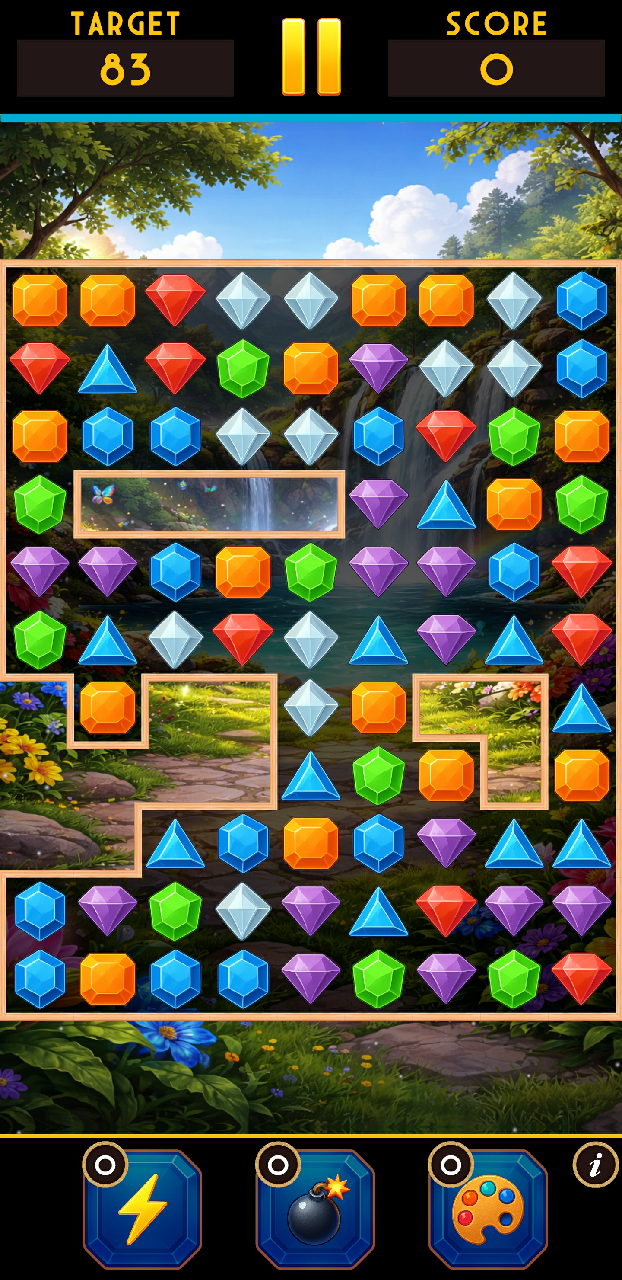 - Match and pop colorful jewels to complete levels
